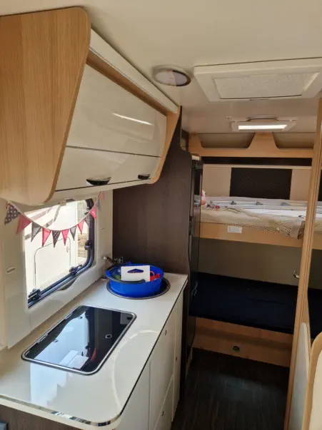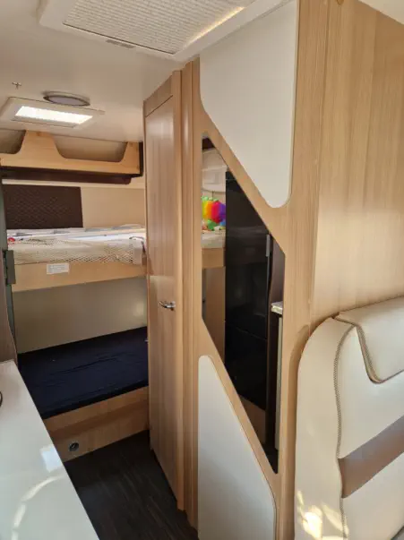Der Groß-Familientourer A 699 DVB: auf nur 6,99m Länge mit Doppel-Etagenbett bietet dieses Wohnmobil insgesamt sechs komfortable Betten – und noch vieles mehr.Zu der Grundausstattung können sie zusätzlich Campingmöbel-Set, einen Gasgrill oder Geschirr bekommen.Bringen Sie nur noch Ihre persönlichen Sachen mit und los geht’s.•Campernavi•Markise•Rückfahrkamera